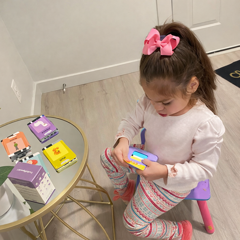 Mi hijo de 3 años tiene retraso en el habla y he probado varios juguetes para ayudarle. ¡Este ha sido un cambio total! ¡Le ENCANTA! Es súper fácil de usar y además muy divertido.