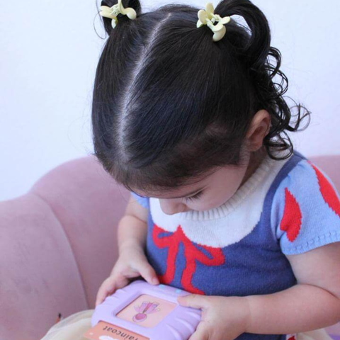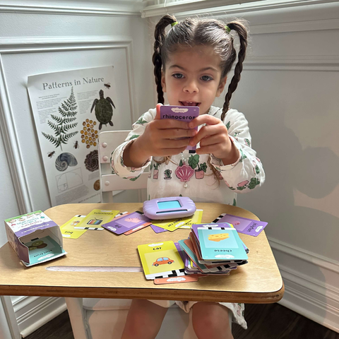 Es un juguete adorable porque educa sin resultar aburrido. Cada tarjeta es de doble cara e incluye la palabra escrita junto a una imagen colorida y atractiva. El dispositivo es muy fácil de usar: solo insertas la tarjeta y pronuncia la palabra.